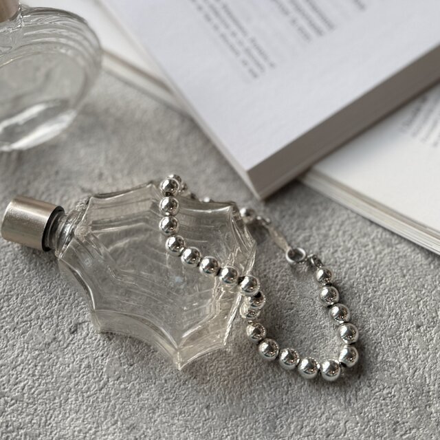 チェーンに繋がれた柔らかく艶めくビーズ。