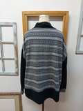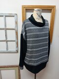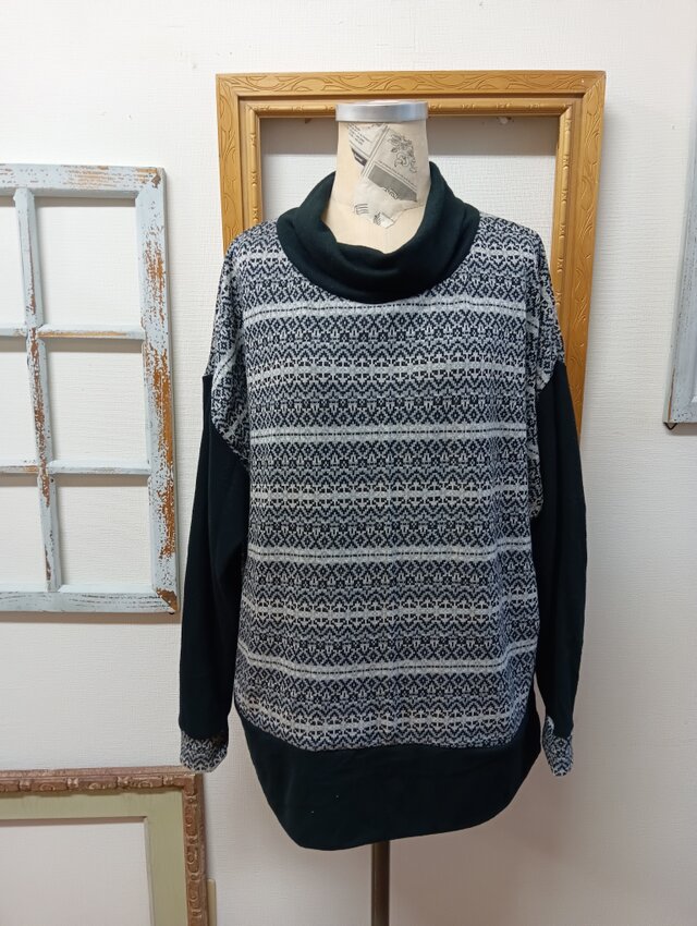 ゆったりニット❤️デザインボーダーニットの首ゆったりタートルネックのドルマントップス 黒グレー(サイズL〜L L)