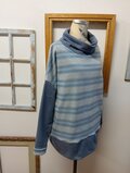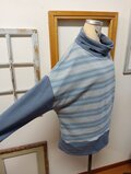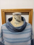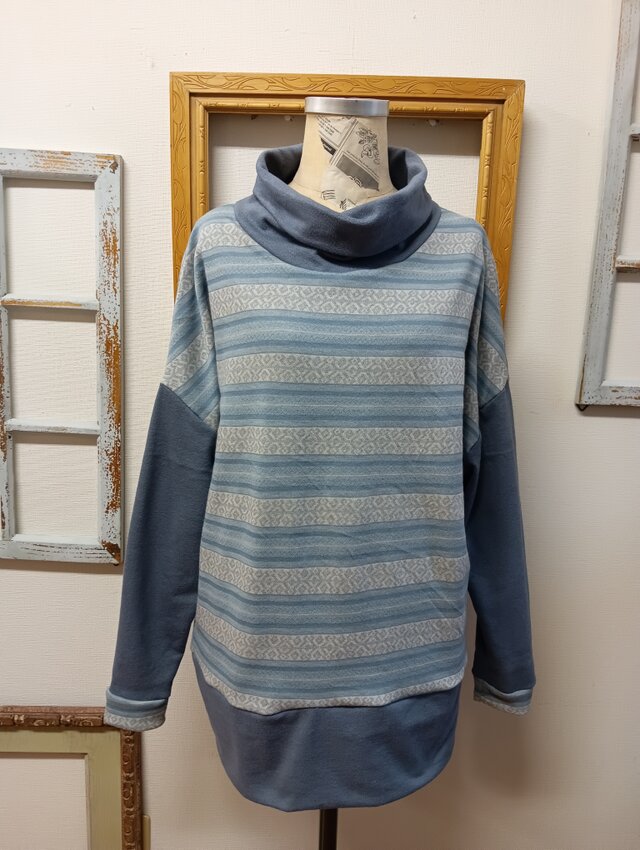 ゆったりニット❤️デザインボーダーニットの首ゆったりタートルネックのドルマントップス 水色グレー(サイズL〜L L)