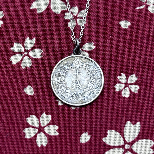 旭日10銭銀貨の古銭ネックレス。