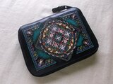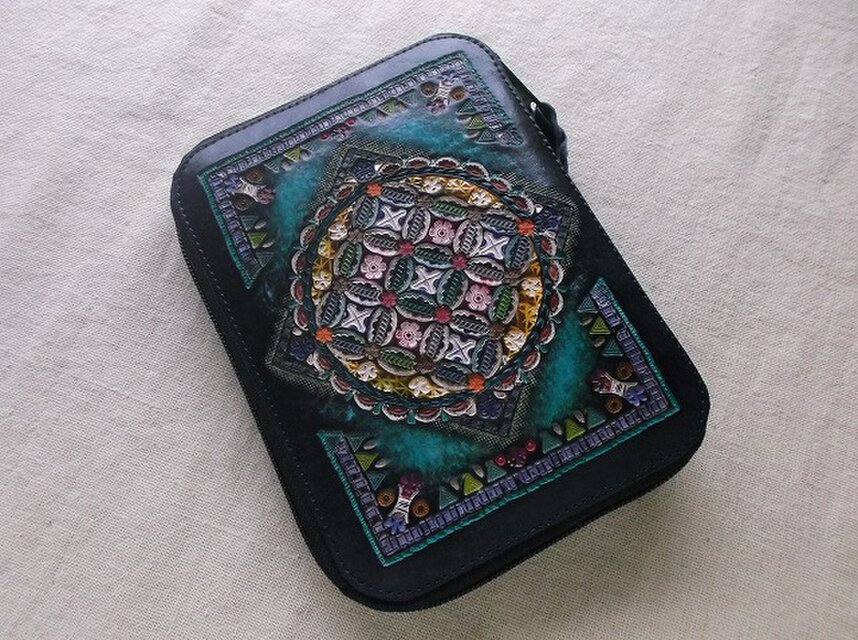 牛タンロウ革に刻印デザインを排列して染色を施しました。