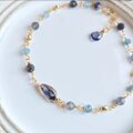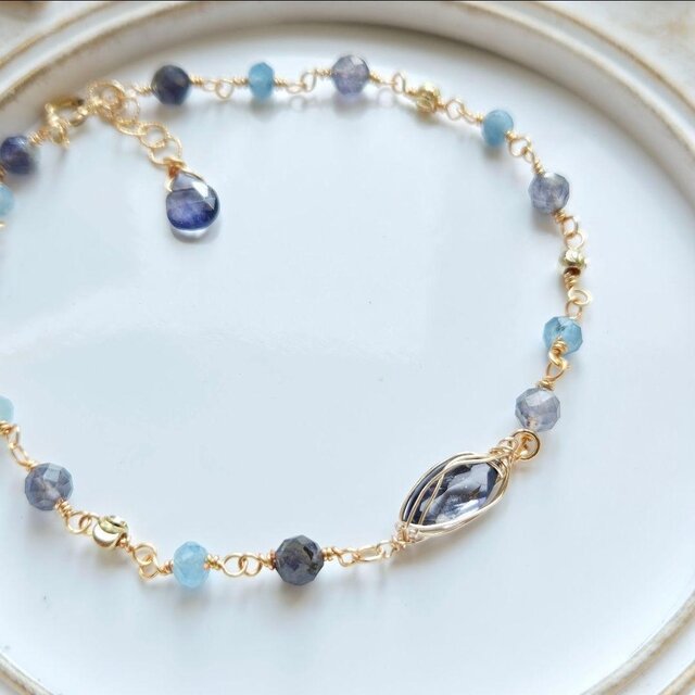 サイドにアイオライト、アクアマリンを使用し、ブレスレット全体に統一感を持たせました。