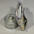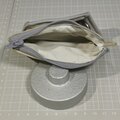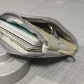 裏地は、グレーとベージュの中間色(グレージュ)で、リングはシルバーです。
