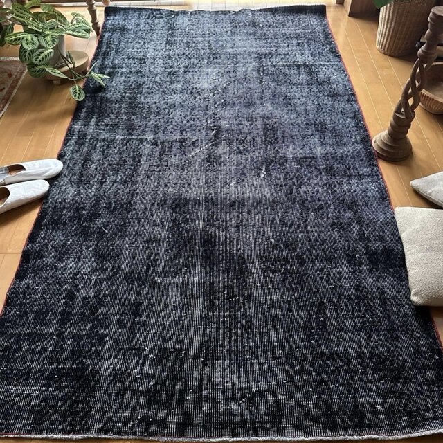 希少なブラックのワンカラーオーバーダイラグは、探してもなかなか出会えない存在。敷くだけで空間が引き締まり、日常を少し特別にしてくれる、大人のための一枚です。