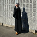 本品は二重廻し構造による分量感を持ちながら、装飾を抑えたブラックウールのみで構成された、非常に静かな佇まいの個体です。