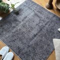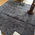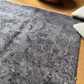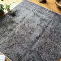syuriで人気のダークグレイをまとった、オーバーダイのヴィンテージラグです。落ち着いたグレートーンの中に、うっすらと浮かび上がるボタニカル柄。主張しすぎないのに、しっかりと表情があり、見るたびに味わいを感じられる一枚です。