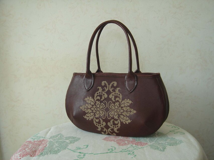 【受注制作】イタリアンレザーの刺繍Bag(クロスステッチ刺繡)