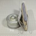 裏地は、グレーとベージュの中間色(グレージュ)で、リングはシルバーです。