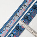 インド刺繍リボン50cm切り売り フォークロア フラワーステム ブルー地 5cm幅 花 HC R-0826
