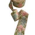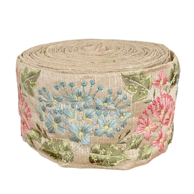 インド刺繍リボン50cm切売 ガクアジサイ ベージュ地 6.8cm幅 花 あじさい 紫陽花 フラワーHC R-0828