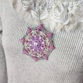 色とりどりのコードで描かれた花模様の曼荼羅ペンダントは、まるで小宇宙を切り取ったかのよう。