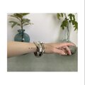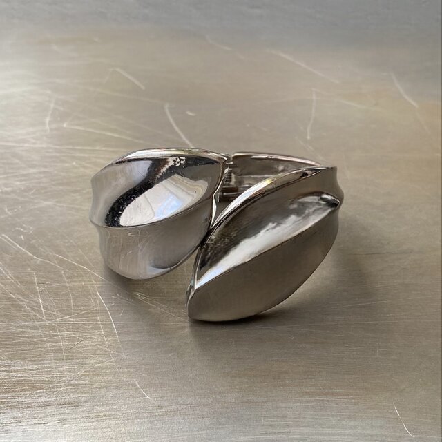 レトロモードな雰囲気のUSAヴィンテージバングル。シルバーカラーの重厚感のあるお洒落なデザインで、中央部分が開閉する作りです。存在感のある幅広タイプでコーディネートのアクセントに。古着やユニセックスなスタイルにもおすすめです。
