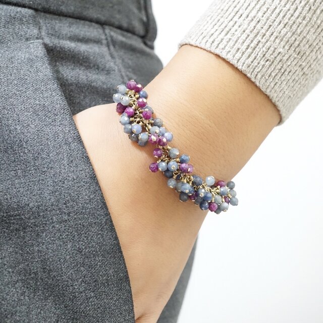 【1点限定】「熟れゆく果実」ブレスレット スライドチェーン サファイア ルビー 14kgf 天然石 誕生石 金属アレルギー対応