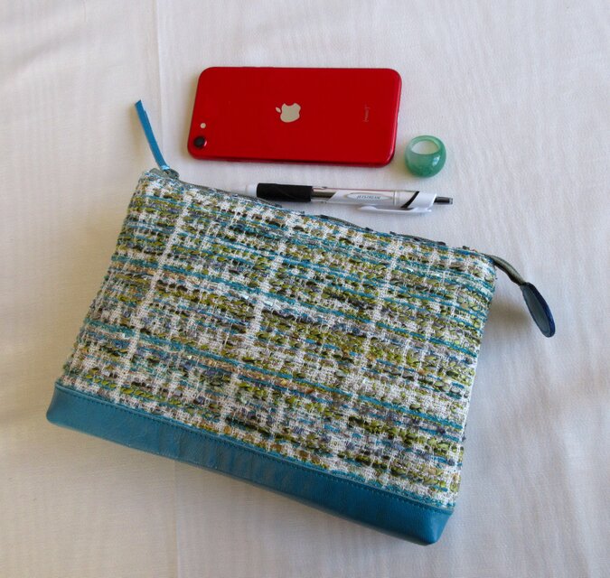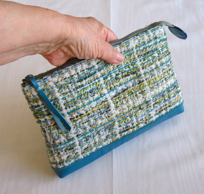 底とファスナーの引き手に生地に合わせてブルーの革を使いました。