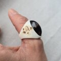 写真通りのとてもかわいい指輪で、とても気にいりました。鹿の角を初めて身に着けましたが、金属のような硬さや冷たさか無く、心地よいです。 配送日の調整もしていただき、とても助かりました。 ありがとうごさいました。