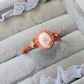 白とオレンジ系の優しい色合いで、波模様が特徴的なトムソナイトリングです。