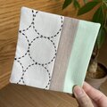 作品を作る上で出てしまったハギレを組み合わせ、シンプルで人気のある丸模様のコースターに仕上げました。
