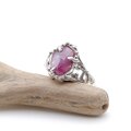 一般的にルビーは加熱処理が施されることが多い宝石ですが、こちらのようにシラーやスター効果が現れるタイプのものは、未処理である場合が多いとされています。