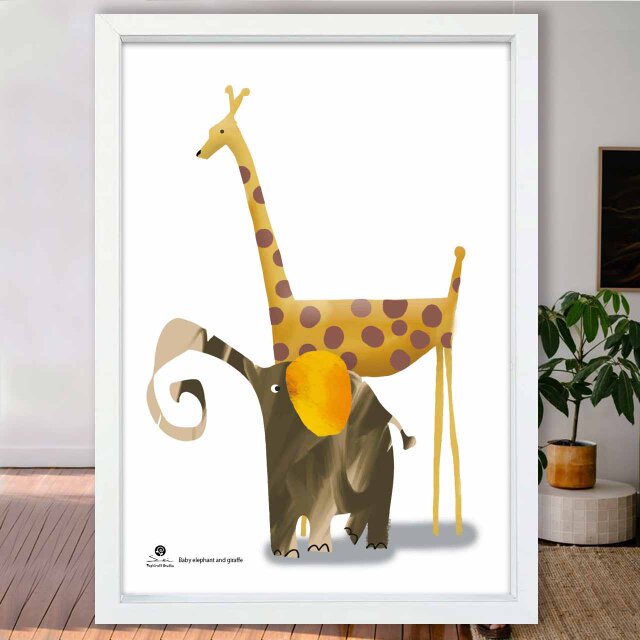 散歩のふたり キリン ゾウ 送料無料 イラスト A4〜A0 ポスター アートポスター アート/sei検索新着順 3850