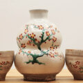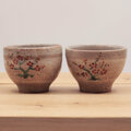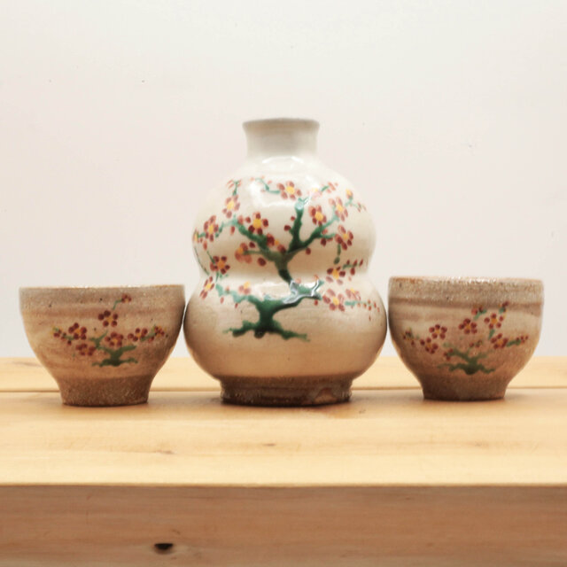 赤絵梅文様(正面) 竹文様(対面) 柔らかな肌合いの釉薬です。