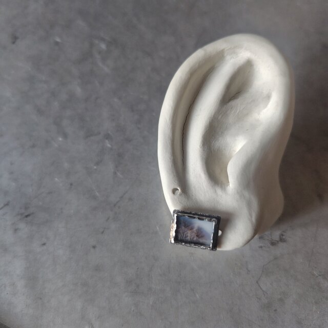小さなデンドリティックアゲートをシルバーピアスに仕立てました。