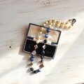 金色のすじ入りビーズは、どこか昭和を感じるようなレトロな雰囲気。二種類のブルーのビーズもヴィンテージで、西ドイツ時代に作られたものです。