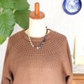 合わせるお洋服としては、大人のカジュアルスタイルには、特にピッタリです。カットソーやニット、あと、トレーナーなんかに着けていただいてもカワイイですよ。