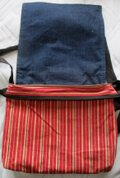 袋の口には、口より大きな35センチのファスナーを付けています。