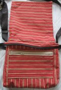 中袋、ベロの裏は赤地の縞の綿地の紬を使っています。