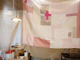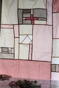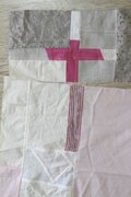 淡いピンクの教会の抽象イメージで各ピースを構成しています。