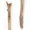 先端にふたまた枝分かれのある枝の流木、どちらの枝も勢いよく伸びた様子がうかがえます。