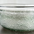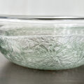 透明な薄オリーブ色の色ガラスを一番外側に被せてボウルの形に吹き、