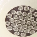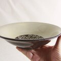 お皿の表面に印花を押し化粧泥を掛けてから長石釉を掛けてあります。