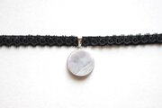 【受注製作】レジンアート ラウンドモチーフとタティングレースとベルベットリボンのチョーカー〈嵐の夜に〉