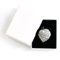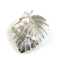 繊細な葉脈の表情を丁寧に表現した、リーフモチーフの真鍮製ブローチ。立体感のある葉のフォルムに、小粒パールを添えることで、上品さとやわらかな華やぎをプラスしました。ゴールドとシルバーの2色展開で、装いに合わせて選べるのも魅力。ジャケットやコート、ストール、バッグなど幅広いアイテムに合わせやすく、季節を問わず活躍します。クラシカルな雰囲気の中にモダンさも感じられるデザインは、フォーマルからカジュアルまで幅広く対応。専用ボックス入りで、贈り物にも最適です。