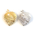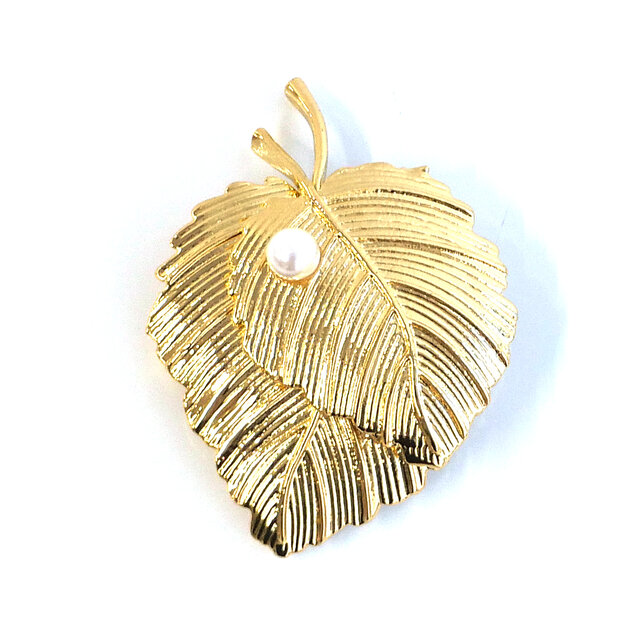 繊細な葉脈の表情を丁寧に表現した、リーフモチーフの真鍮製ブローチ。立体感のある葉のフォルムに、小粒パールを添えることで、上品さとやわらかな華やぎをプラスしました。ゴールドとシルバーの2色展開で、装いに合わせて選べるのも魅力。ジャケットやコート、ストール、バッグなど幅広いアイテムに合わせやすく、季節を問わず活躍します。クラシカルな雰囲気の中にモダンさも感じられるデザインは、フォーマルからカジュアルまで幅広く対応。コーディネートのアクセントとしてはもちろん、贈り物にもおすすめのブローチです。