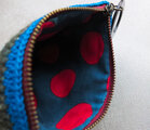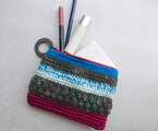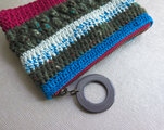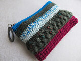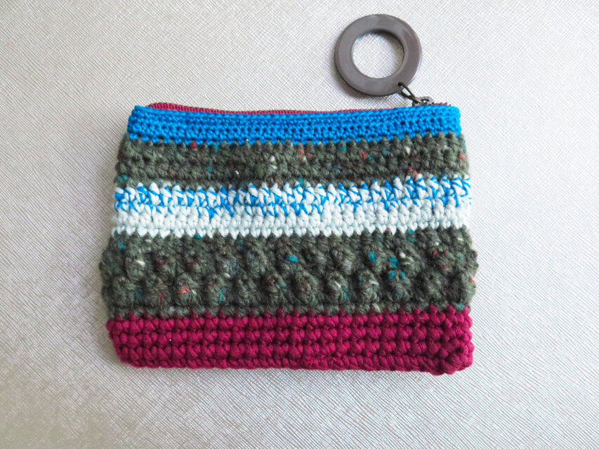 色々な色を組み合わせたファスナー付きの手編みのポーチです。