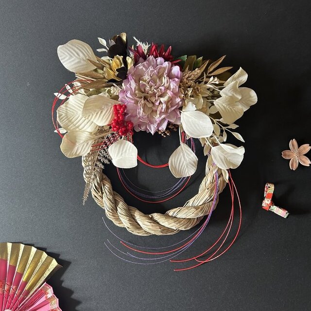 #お正月飾り #しめ縄リース #ダリア #エクリュ