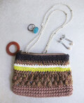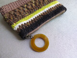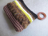 手編みカラフルボーダーニットポーチ(ブラウン&ブラック)