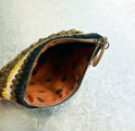 編んであるので中に入れたものも傷つきにくく、裏地付きなので小さな物も抜け落ちません。コスメポーチや薬入れ、アクセサリーポーチと色々使えて便利なポーチです。