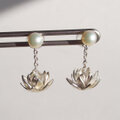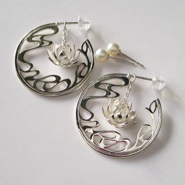 【月夜に咲く睡蓮と流水の4WAYシルバーピアス 淡水パールの輝き】