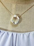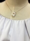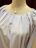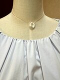 シンプルにデコルテの中央に白いパールが鎮座します。