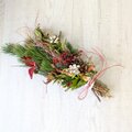 松ぼっくり・ナンキンハゼ・野ばらの実に、稲穂を合わせたお正月飾りです。