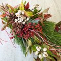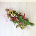 花材:若松・お多福南天・コニファー・稲穂・野ばらの実・ナンキンハゼ