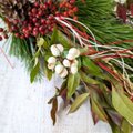 小振りの松ぼっくりを合わせて、白いナンキンハゼの実をアクセントにしています。