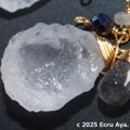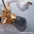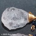 クリスタルのラフロックが大粒の方は、この仔を留める時に、モスアクアマリン、ABコーティングのオニキス、アクアマリンのラウンド、そしてアクセントになるように宝石質エチオピア産プレシャスオパールのロンデルを通しワイヤーで留めました