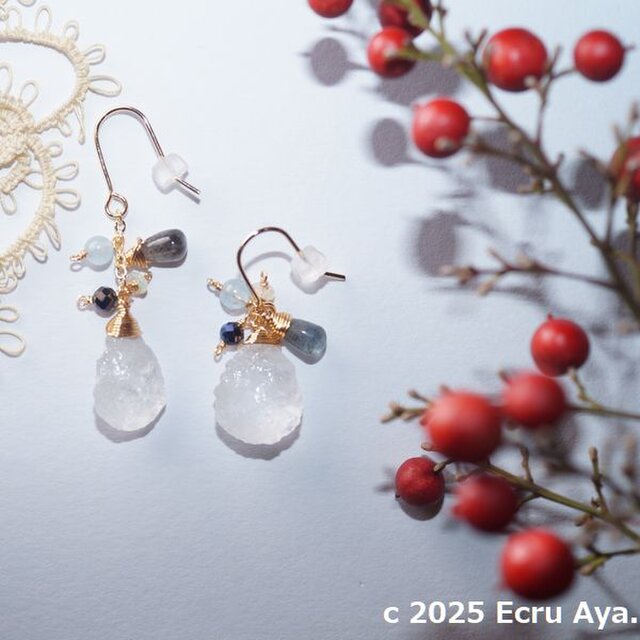 #Ecru #天然石 #イヤリング #ピアス #クリスタル #アクアマリン #プレシャスオパール #霰 #冬 #春 #Ecru_春 #Ecru_新作