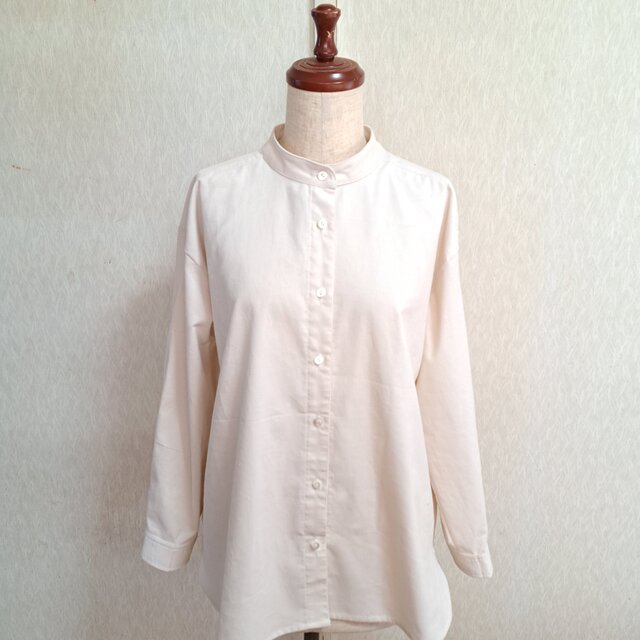 コーデュロイ バンドカラーブラウス スタンドカラー ホワイトクリーム コットン 綿 Lサイズ