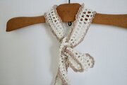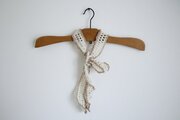 毛糸、ふわふわ、アイボリー、ブラウン、ベージュ、チョコレート、かわいい、スカーフ、首、プレゼント、ニット、タイ、リボン、パイピング、バイカラー、個性的、ロマンティック