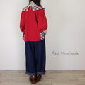 クラシカルカラーのブリリアンレッド・ドルマンブラウス -トリコロールチェック-